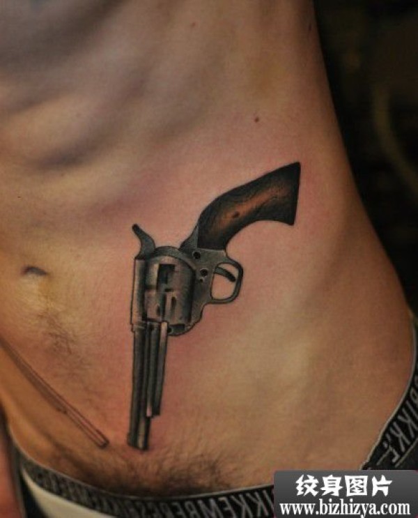 型男腰侧欧美手枪纹身图案图片_欧美纹身图案大全_纹身图吧