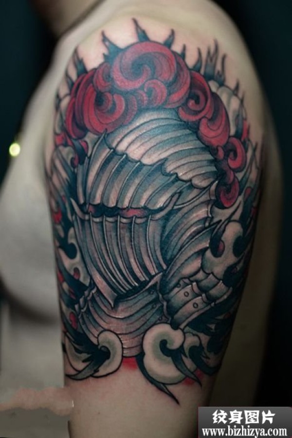 欧美中世纪头盔另类手臂纹身图案图片_欧美纹身图案大全_纹身图吧