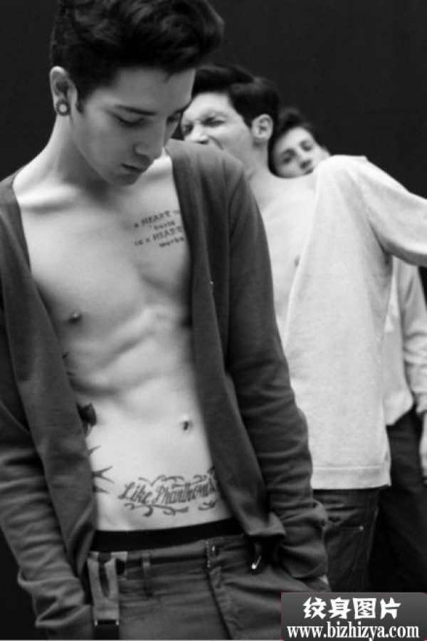 欧美男人个性腹部胸部英文纹身图案图片_欧美纹身图案大全_纹身图吧