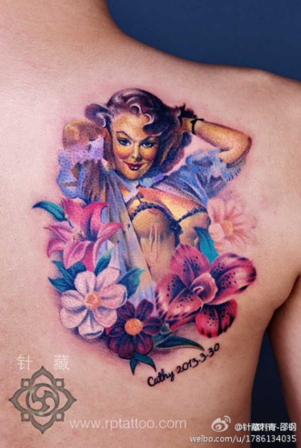 后肩背漂亮的欧美美女纹身图案_欧美纹身图案大全_纹身图吧