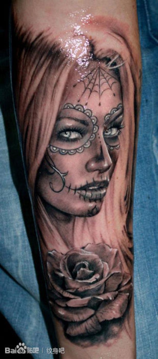 手臂漂亮时尚的欧美亡灵装美女纹身图案_欧美纹身图案大全_纹身图吧
