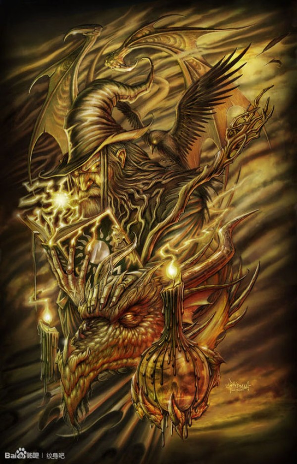 一款超酷经典的欧美巫师纹身图案_欧美纹身图案大全_纹身图吧