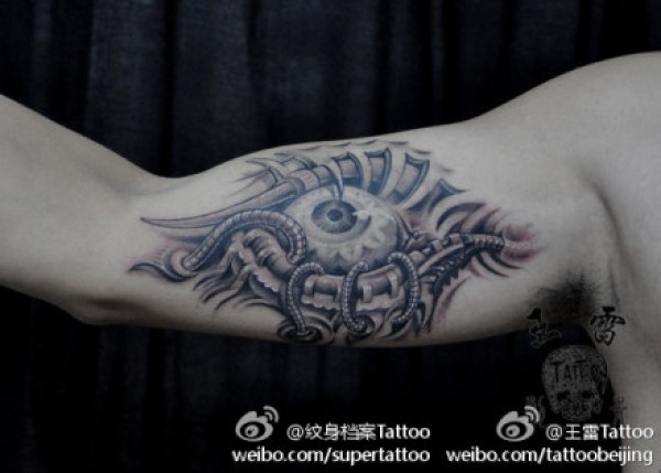 男人手臂帅气精美的欧美机械眼睛纹身图案_欧美纹身图案大全_纹身图吧