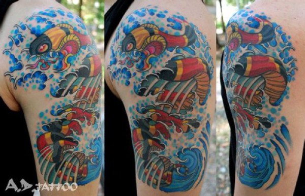 男人手臂精美好看的欧美彩色蛇纹身图案_欧美纹身图案大全_纹身图吧