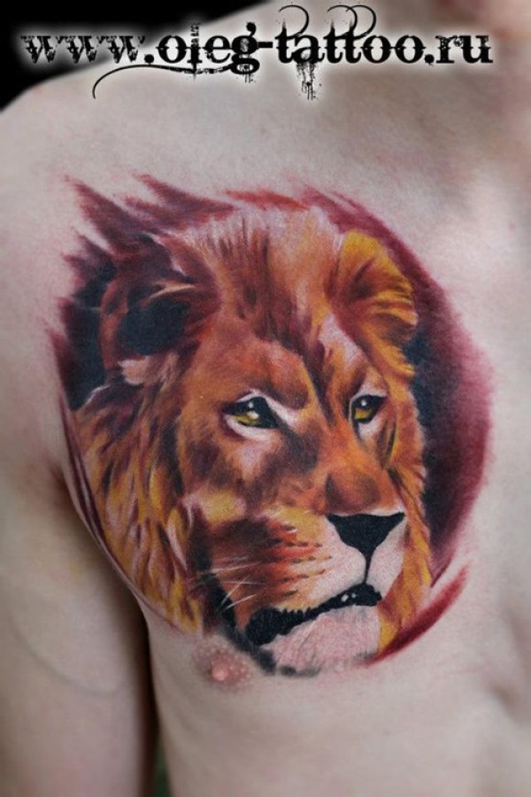 男人前胸超酷的欧美彩色狮头纹身图案_欧美纹身图案大全_纹身图吧