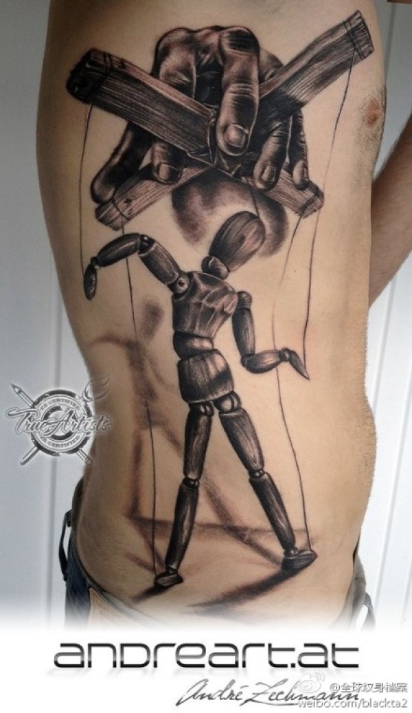 男人侧腰经典的欧美提线木偶纹身图案_欧美纹身图案大全_纹身图吧