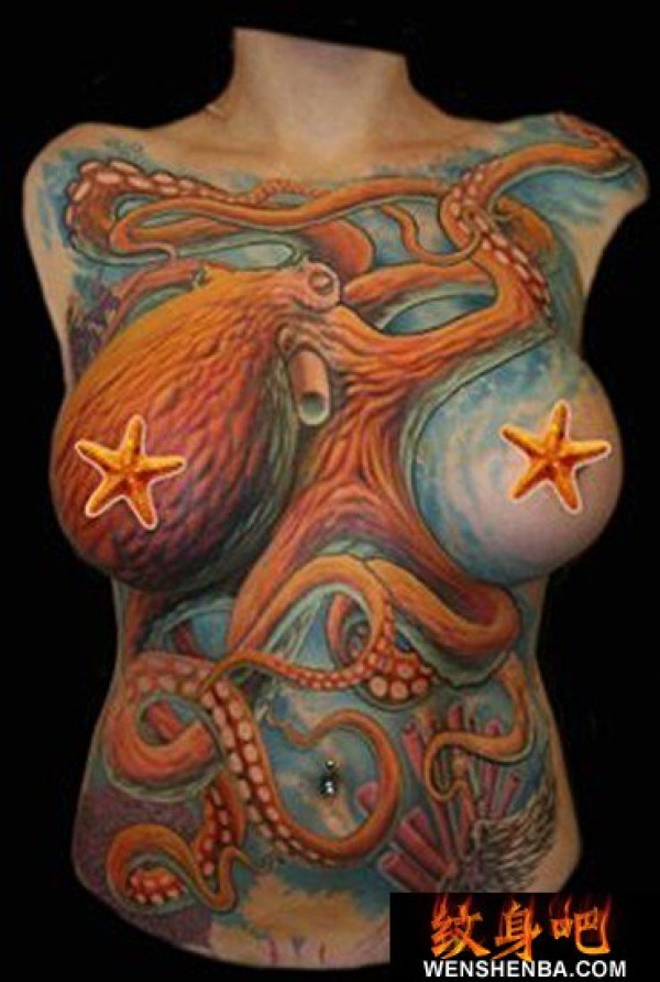 欧美彩色前面大章鱼_欧美纹身图案大全_纹身图吧