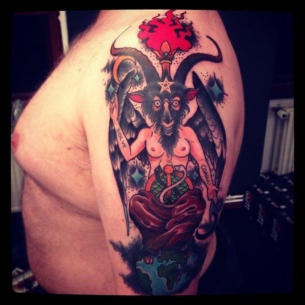 大臂欧美山羊女纹身_欧美纹身图案大全_纹身图吧