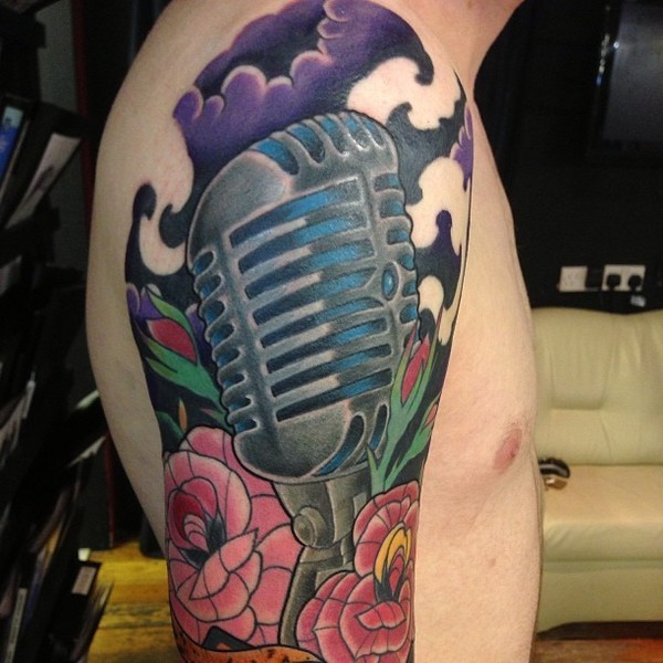 大臂欧美麦克风纹身_欧美纹身图案大全_纹身图吧