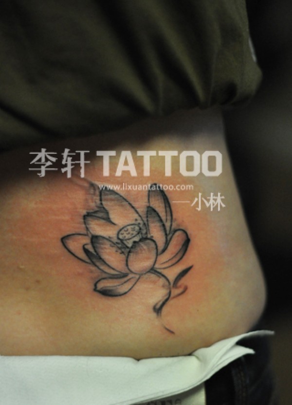 欧美彩色纹身腰部荷花纹身_欧美纹身图案大全_纹身图吧