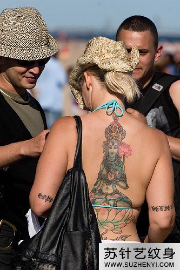 欧美女子背上彩色时尚湿婆神纹身_欧美纹身图案大全_纹身图吧