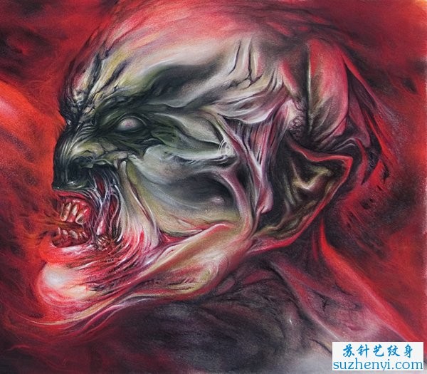 分享一款欧美彩色鬼头纹身图案_欧美纹身图案大全_纹身图吧