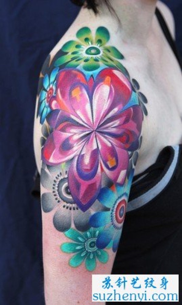 欧美彩色向日葵纹身_欧美纹身图案大全_纹身图吧