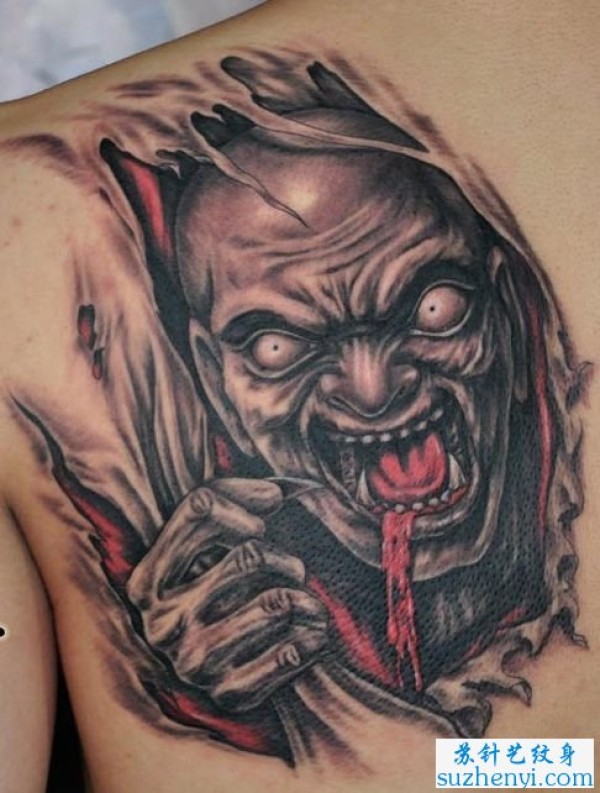 肩背欧美撕皮恶魔纹身_欧美纹身图案大全_纹身图吧
