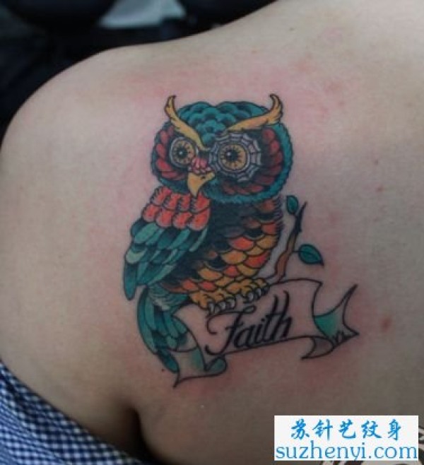 肩背欧美风格猫头鹰纹身_欧美纹身图案大全_纹身图吧