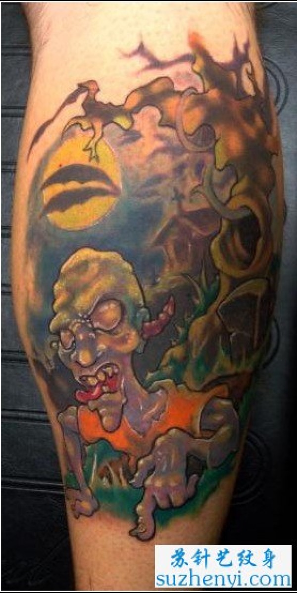腿部一款另类很酷的欧美女鬼纹身图案_欧美纹身图案大全_纹身图吧