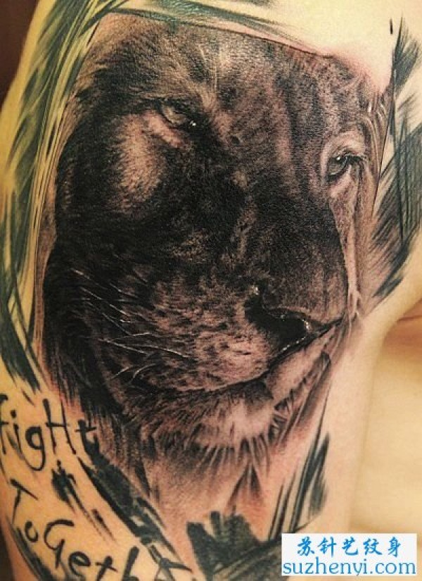 手臂欧美写实狮子纹身_欧美纹身图案大全_纹身图吧