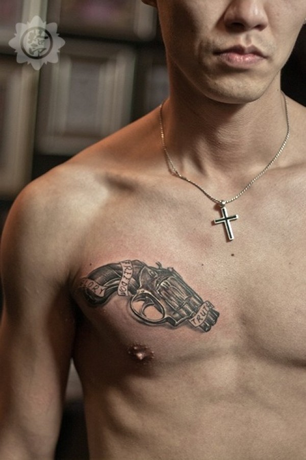 欧美黑灰写实手枪纹身_欧美纹身图案大全_纹身图吧