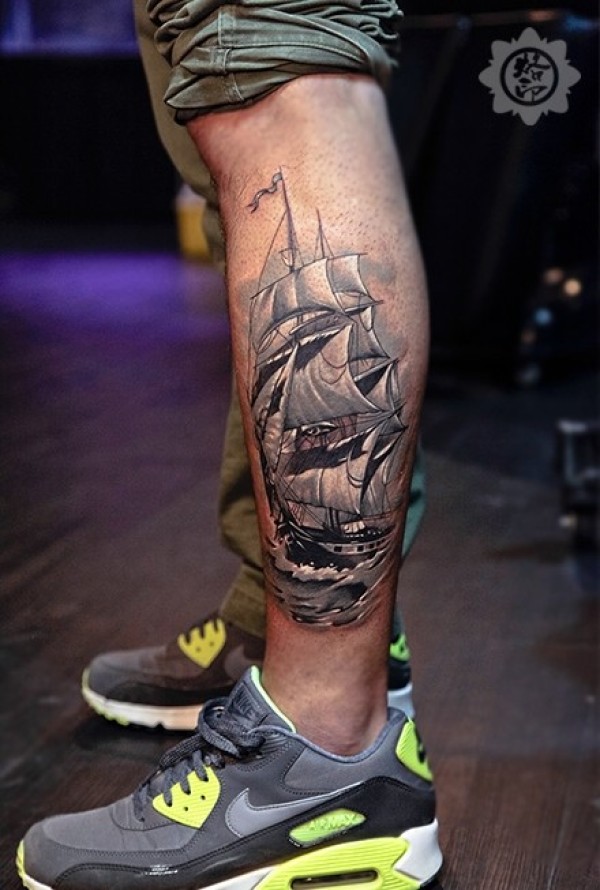 欧美黑灰帆船纹身_欧美纹身图案大全_纹身图吧