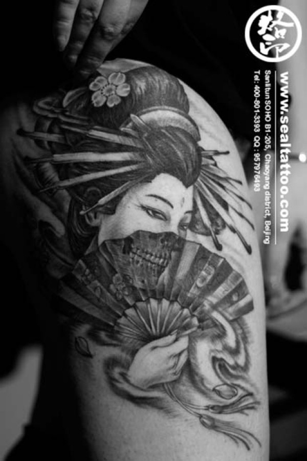 个性欧美女性艺妓纹身图案_欧美纹身图案大全_纹身图吧