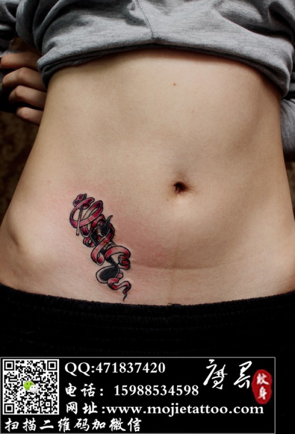 欧美音符舞带遮盖手术疤痕纹身_欧美纹身图案大全_纹身图吧