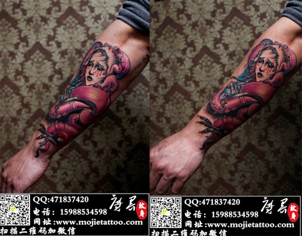 包手臂欧美章鱼美女纹身_欧美纹身图案大全_纹身图吧