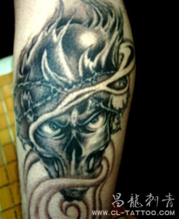 腿部欧美立体鬼怪纹身_男士小图_欧美纹身图案大全_纹身图吧