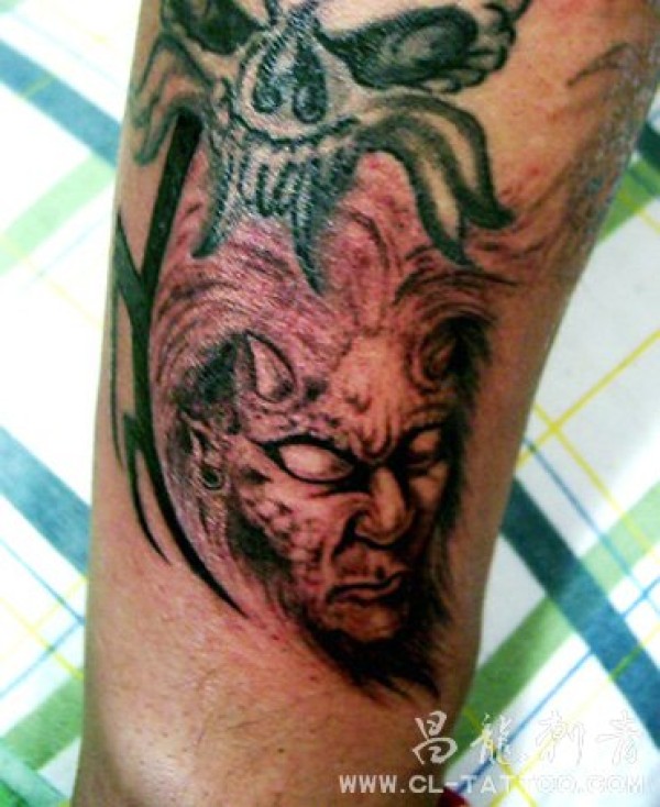 分享一款欧美彩色鬼头纹身图案_欧美纹身图案大全_纹身图吧