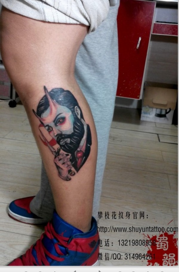 腿部超酷的一款欧美恶魔纹身图案_欧美纹身图案大全_纹身图吧