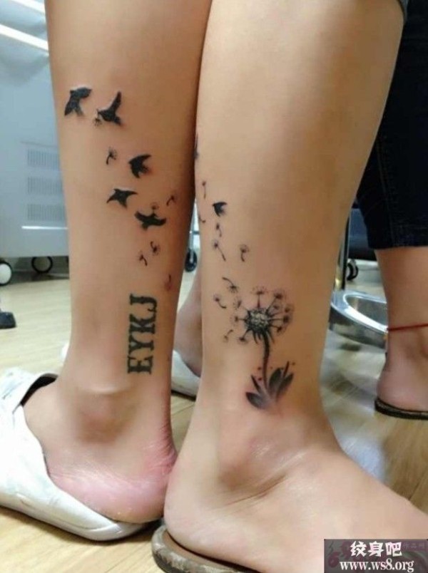 蒲公英与鸟儿情侣图案_情侣纹身图案大全_纹身图吧