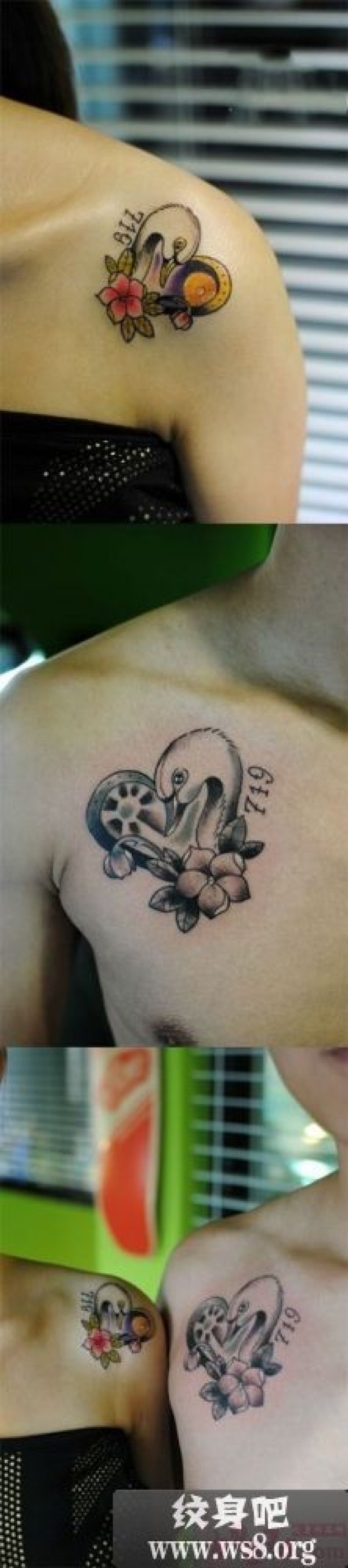 个性情侣天鹅肩部图案_情侣纹身图案大全_纹身图吧