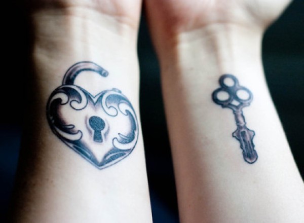 腿部情侣钥匙爱心锁纹身_情侣纹身图案大全_纹身图吧