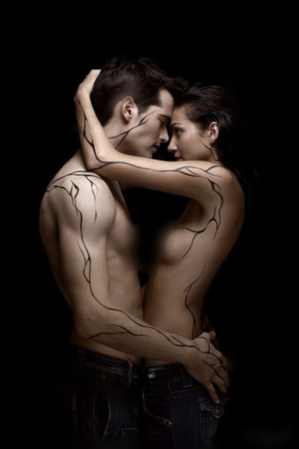 欧美情侣全身另类线条个性纹身_情侣纹身图案大全_纹身图吧