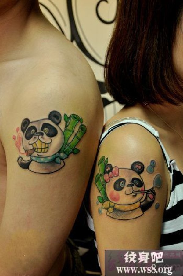 情侣手臂可爱熊猫吃竹子图案_情侣纹身图案大全_纹身图吧