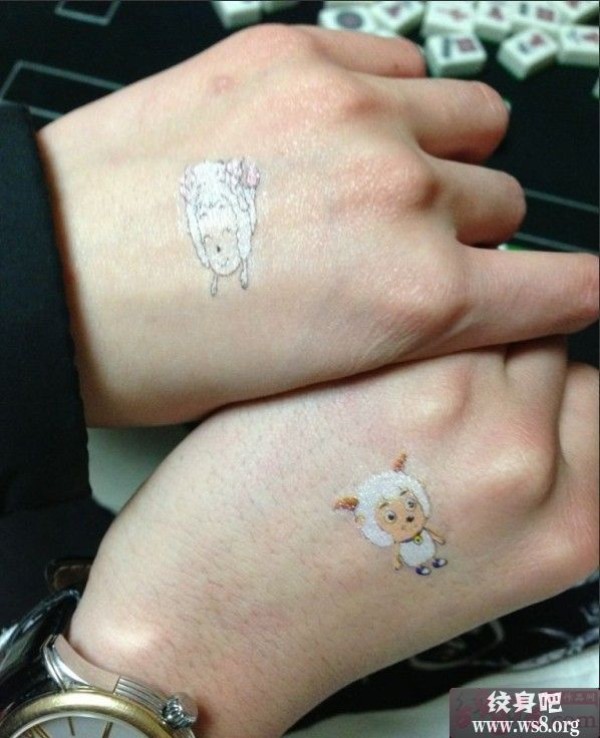 情侣手背喜洋洋、美羊羊贴纸图案_情侣纹身图案大全_纹身图吧