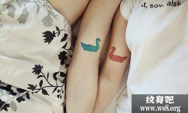 情侣天鹅纸鹤图案_情侣纹身图案大全_纹身图吧