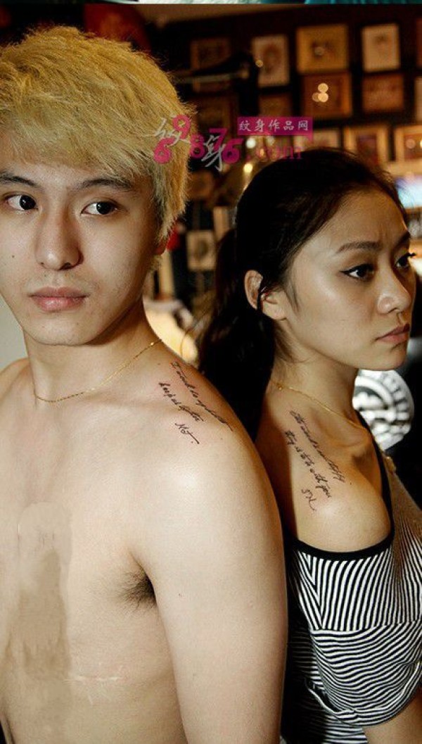 个性情侣肩部小清新英文纹身_情侣纹身图案大全_纹身图吧