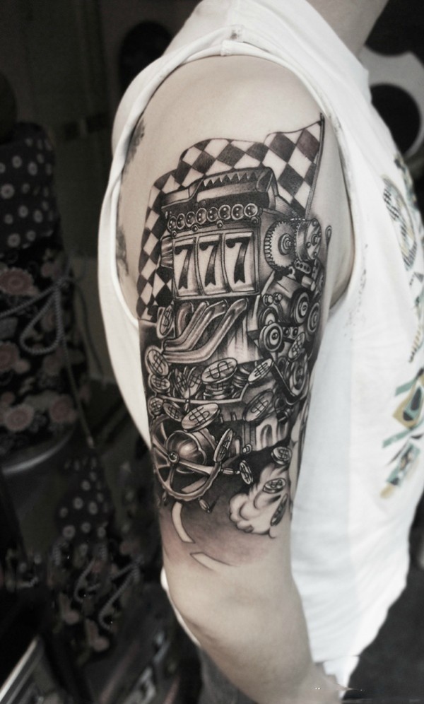 创意黑灰机械花臂纹身_情侣纹身图案大全_纹身图吧