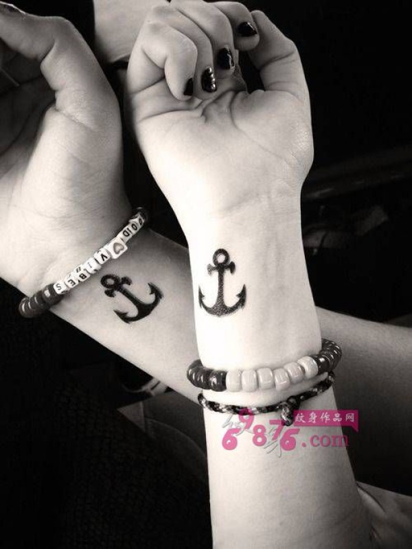 情侣复古船锚黑白纹身_情侣纹身图案大全_纹身图吧