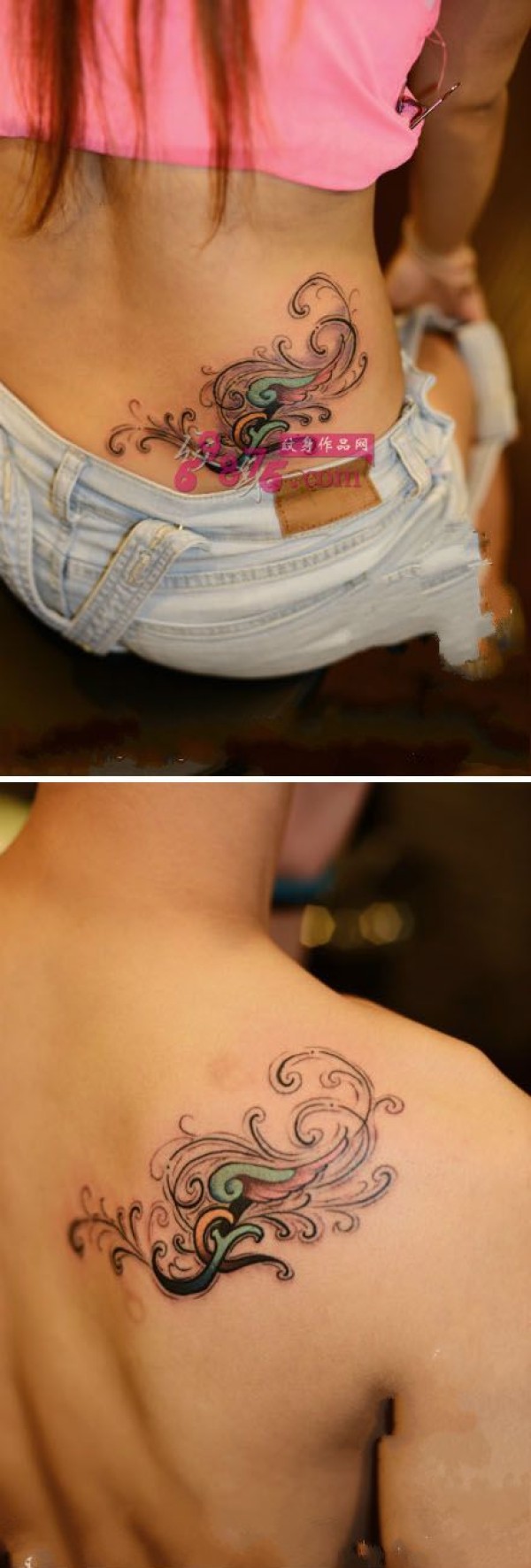 情侣肩背时尚羽毛纹身_情侣纹身图案大全_纹身图吧