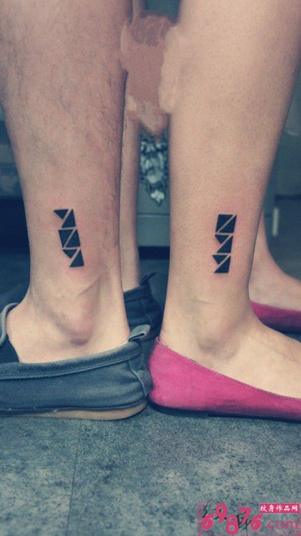 个性情侣小腿拼图创意纹身_情侣纹身图案大全_纹身图吧