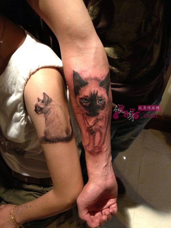 个性情侣可爱猫咪手臂纹身_情侣纹身图案大全_纹身图吧