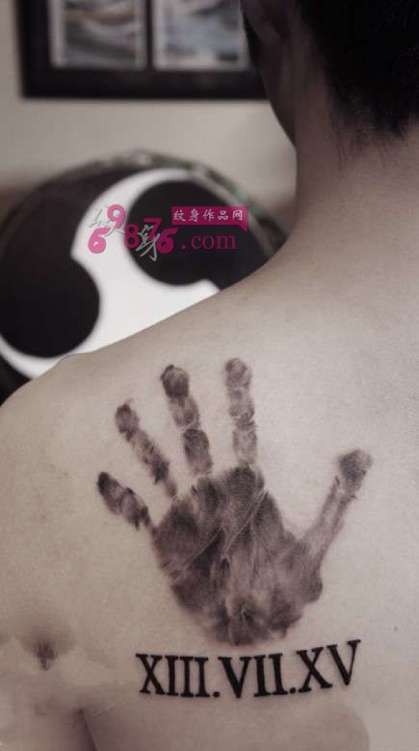 个性情侣爱的掌印后肩纹身_情侣纹身图案大全_纹身图吧