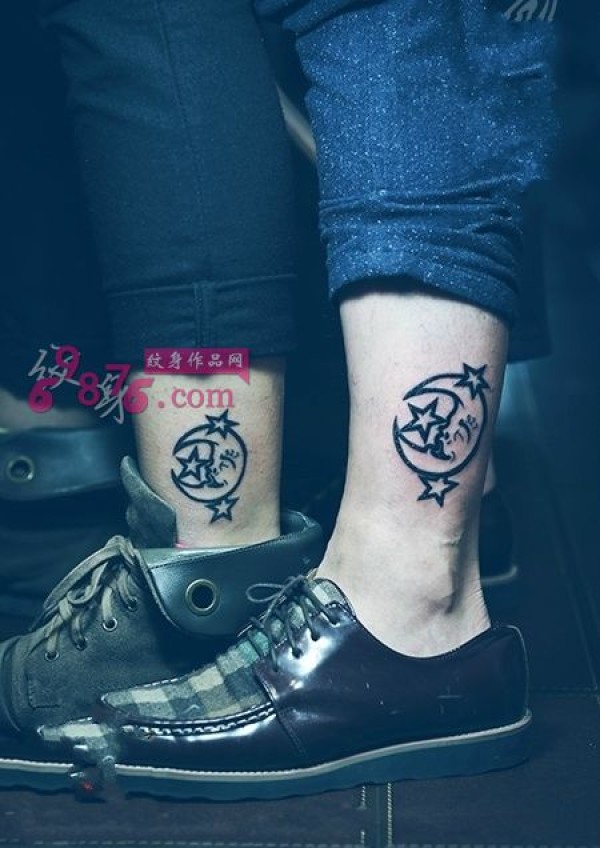 情侣个性月亮星星脚踝纹身_情侣纹身图案大全_纹身图吧