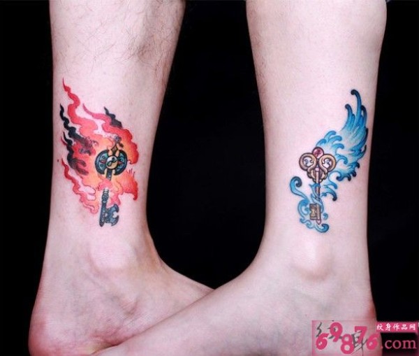 脚踝水火钥匙纹身情侣_情侣纹身图案大全_纹身图吧