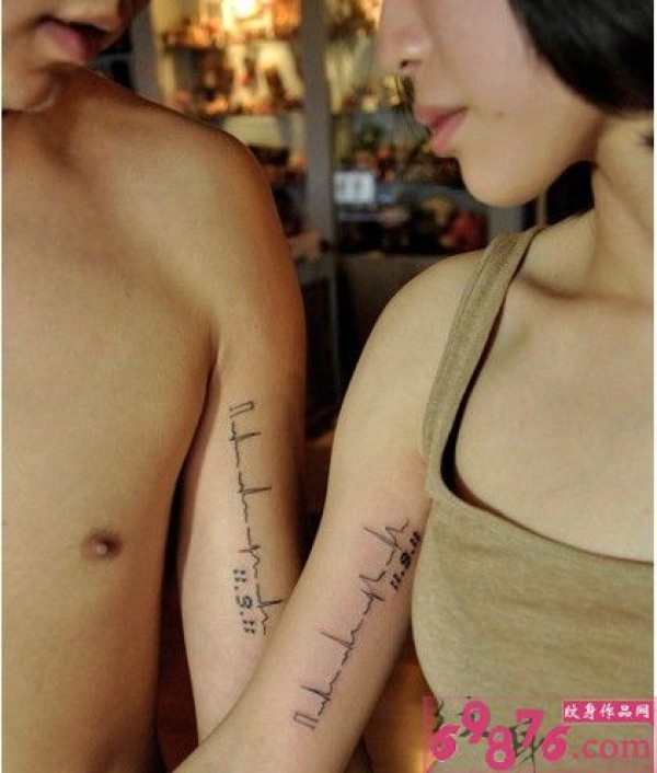 个性情侣手臂爱情心电图纹身_情侣纹身图案大全_纹身图吧