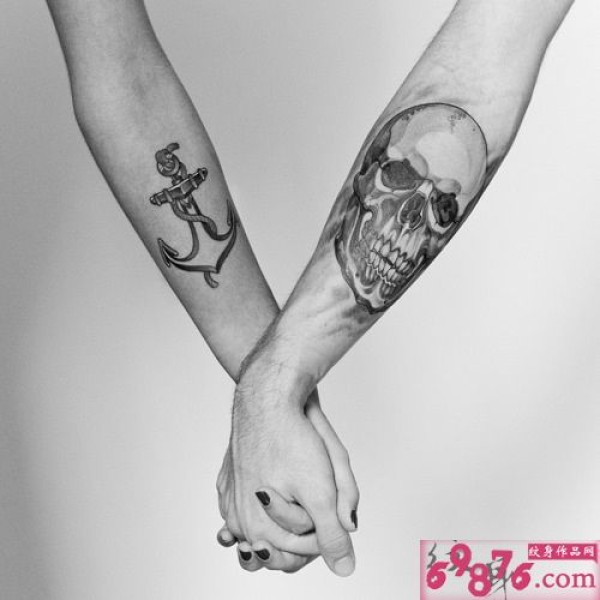情侣黑白骷髅和锚个性刺青_情侣纹身图案大全_纹身图吧