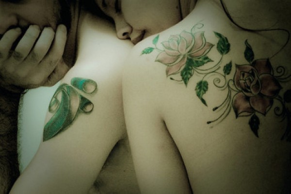 情侣肩部唯美花图腾纹身_情侣纹身图案大全_纹身图吧