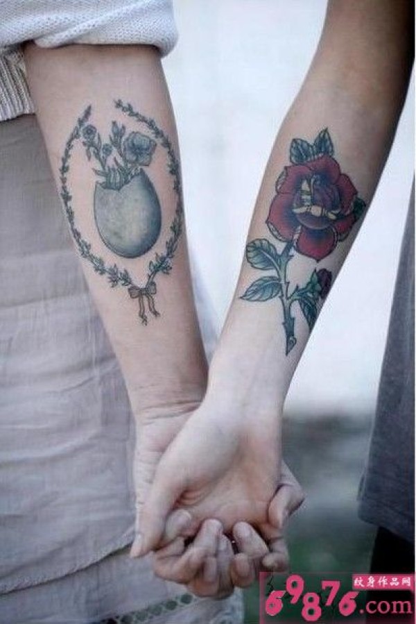 情侣花与花瓶个性纹身_情侣纹身图案大全_纹身图吧