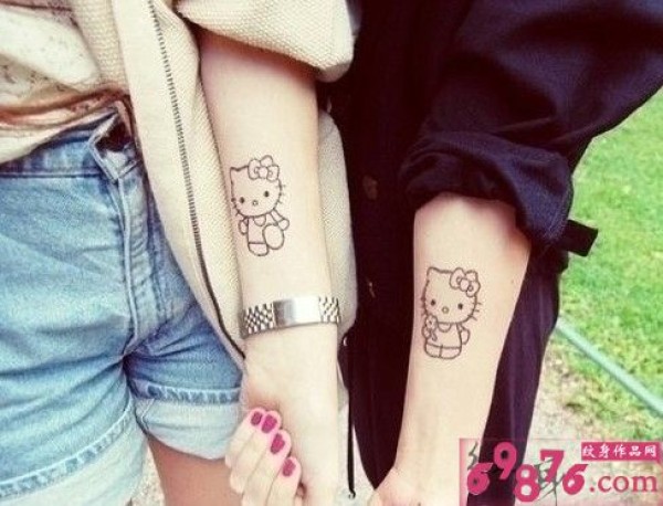 个性情侣可爱kitty纹身_情侣纹身图案大全_纹身图吧